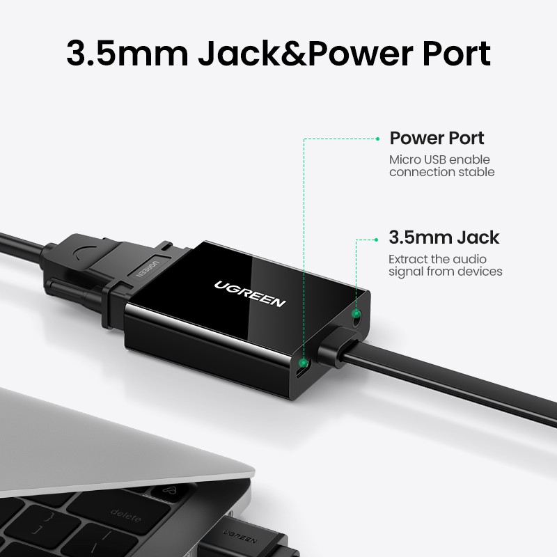 *VGA hanya dapat memproses sinyal Video, namun adaptor ini juga dilengkapi dengan jack line-out 3,5 mm