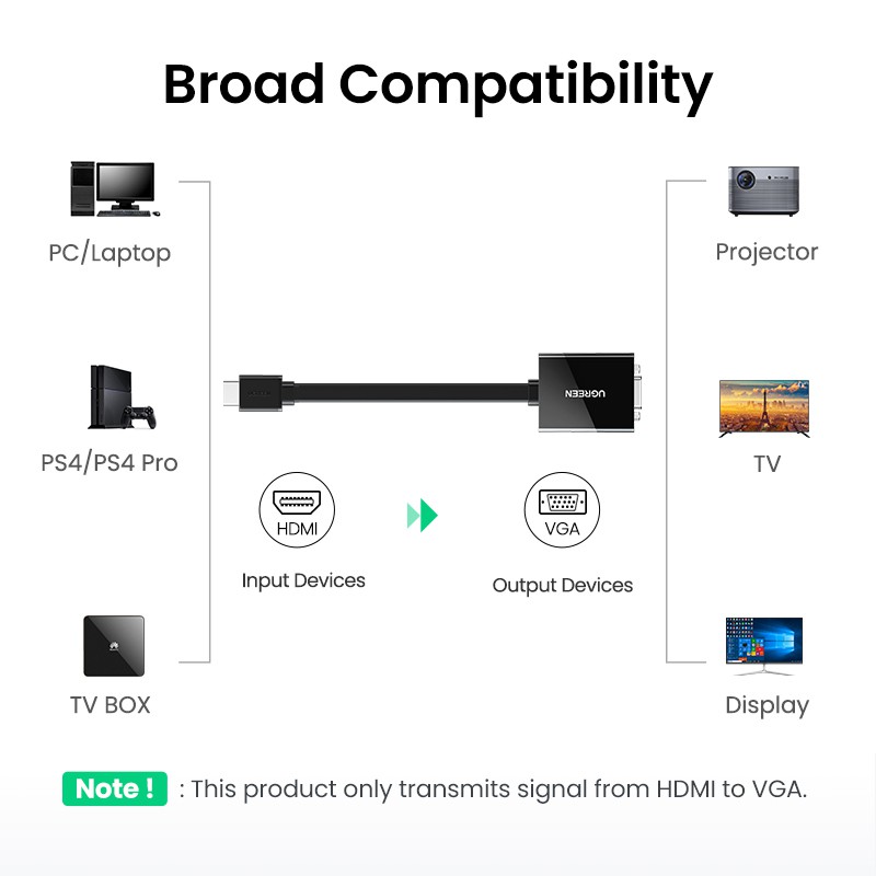 *Tidak bisa bolak-balik, hanya mentransfer sinyal dari perangkat sumber HDMI (PC) ke VGA (Layar)